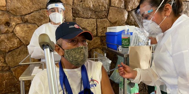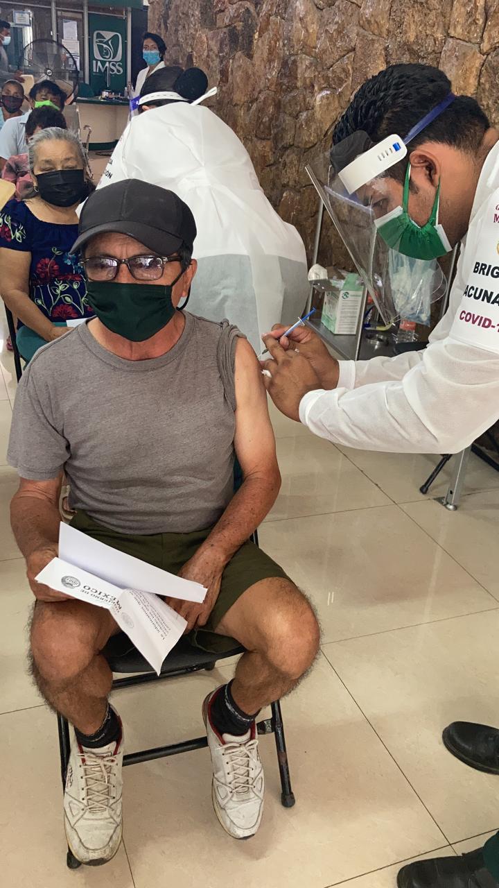 Este viernes 26 de febrero, el personal de salud del Hospital General de Subzona con Medicina Familiar (HGSZ/MF) No. 46 del Instituto Mexicano del Seguro Social (IMSS) continúa la inmunización contra el virus SARS-CoV-2 a adultos mayores, en la localidad de Umán.