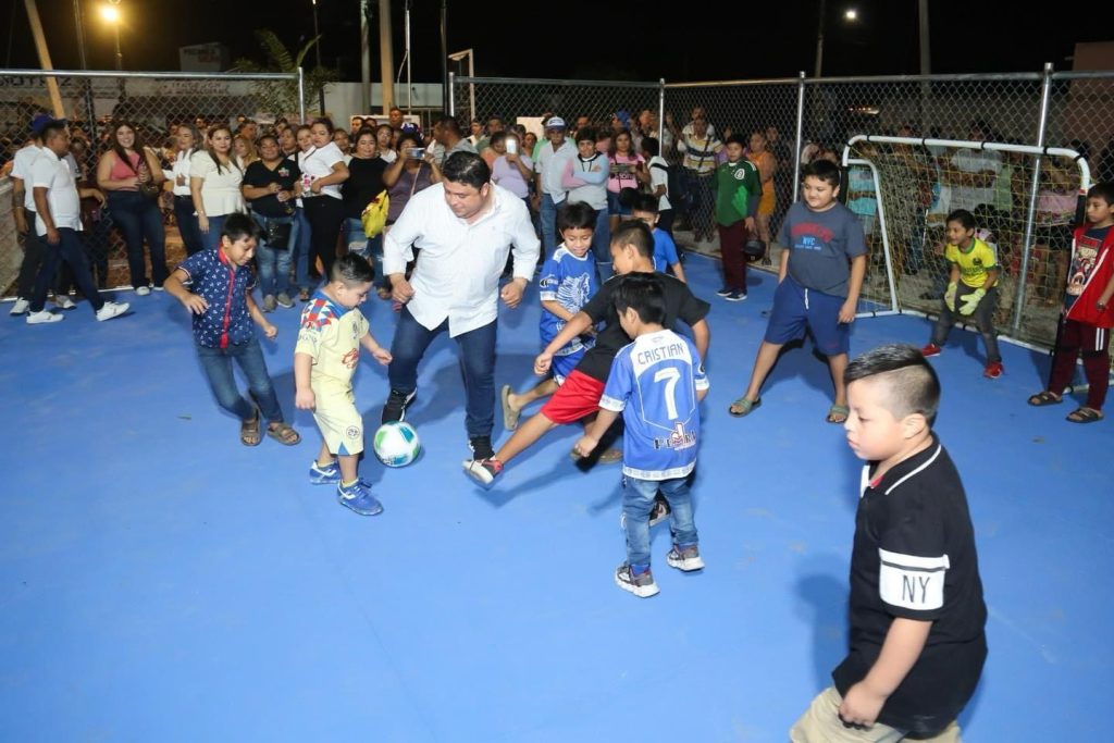 Vecinos como don Marco Antonio Batún agradeció que el alcalde Edwin se haya preocupado por los jóvenes con el mejoramiento del parque infantil y la cancha de usos múltiples.
