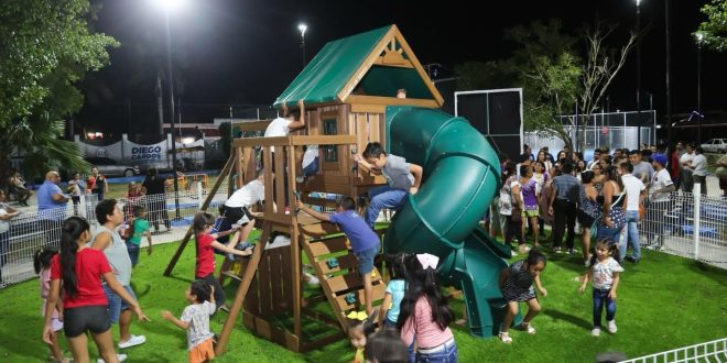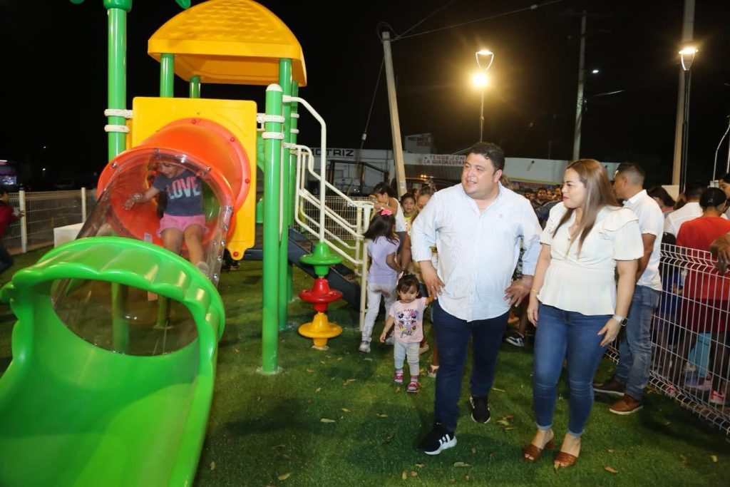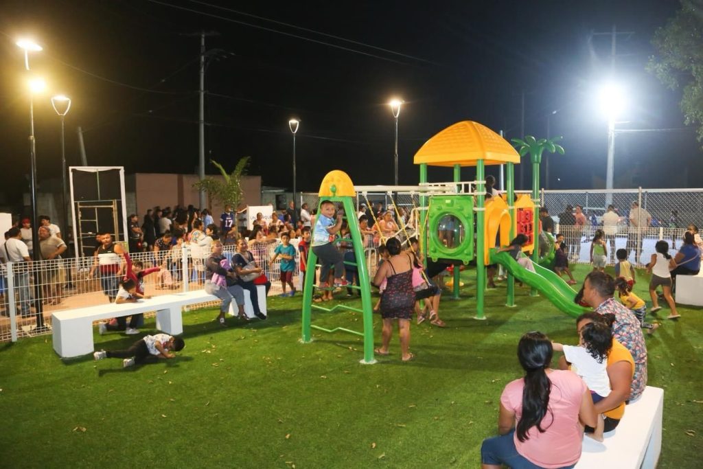 “El parque quedó como ustedes se lo merecen, con cancha iluminada y rehabilitada, más postes, alumbrado público, nuevas bancas, juegos infantiles, entre otras mejoras importantes”, expresó.