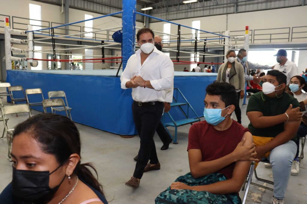 Progreso, Yucatán a 6 de enero 2022.- Esta mañana el alcalde Julián Zacarías Curi visito la Unidad Deportiva Víctor Cervera Pacheco para supervisar la jornada de vacunación, de la segunda dosis contra el Covid-19 a los jóvenes de 15 a 17 años.