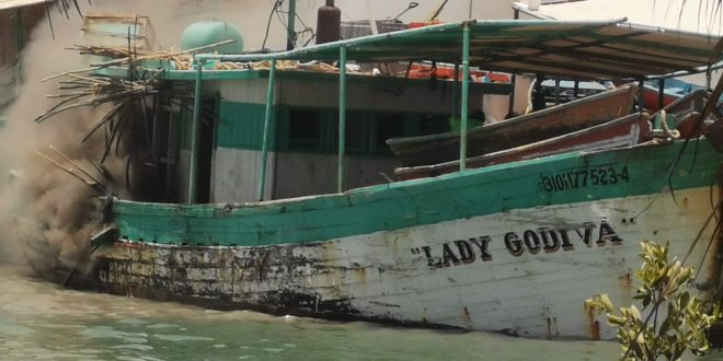 Como informamos, era alrededor del mediodía cuando se produjo el incidente en la embarcación pesquera “Leidy Godiva” del empresario Saúl Madera en el varadero de Mario Uc, situado en el Puerto de Abrigo de Yucalpetén.