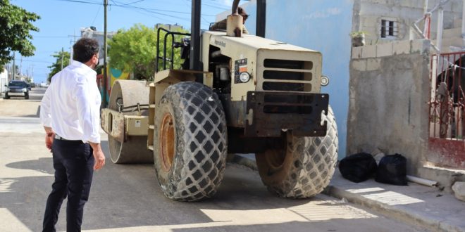 PROGRESO, 23 de julio . – El alcalde Julián Zacarías Curi acudió a supervisar los trabajos de finalización de la base hidráulica que realizan las cuadrillas de la Dirección de Desarrollo Urbano y Obras Púbicas, en la calle 126 con 33 hasta la 37, de la colonia Vicente Guerrero.