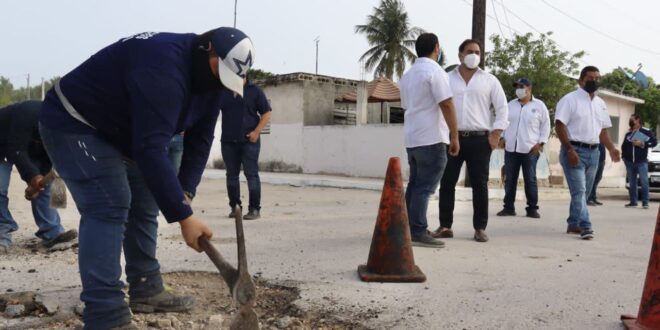 Progreso Yucatán a 13 de enero 2022. – Continúan los trabajos en las comisarías de nuestro puerto, y en esta ocasión, siguiendo las indicaciones del alcalde Julián Zacarías Curi, se bachearon varias calles de Chuburná Puerto.