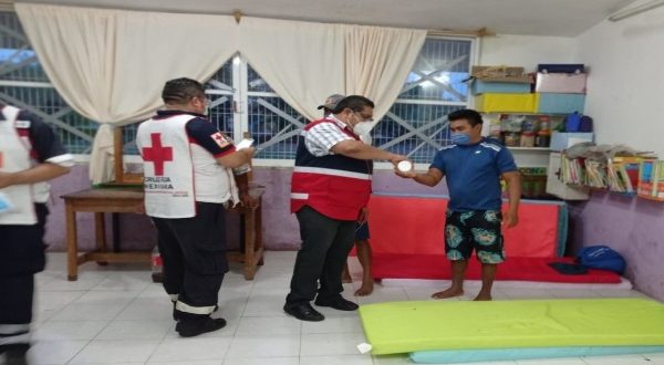 De igual forma los voluntarios de la Delegación Tizimín, visitaron nuevamente el albergue de la escuela primaria Benito Juárez García donde se encontraban alrededor de 20 personas que fueron evacuadas de Río Lagartos y a quienes se les distribuyó cubrebocas y gel antibacterial.