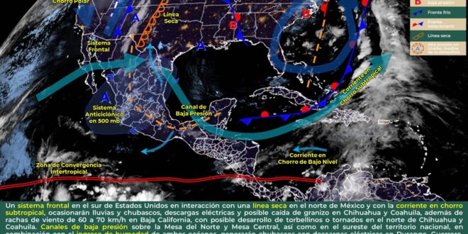 Se prevé que se presenten condiciones de cielo despejado a parcialmente nublado, sin embargo, debido al ingreso de aire cálido y húmedo procedente del mar Caribe y golfo de México, con probabilidad de lloviznas aisladas en el sur de Quintana Roo, así como lloviznas con chubascos en el centro y sur de Campeche, mientras que para el estado de Yucatán no se prevén lluvias. El ambiente será caluroso a muy caluroso durante la tarde y cálido por la noche. Viento del este-noreste de 15 a 25 km/h y rachas mayores a 50 km/h en costas de Yucatán y Campeche.