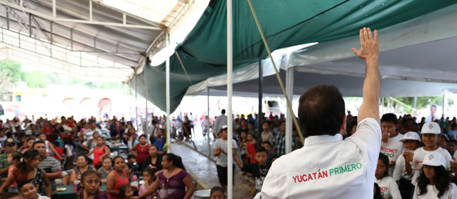 En Chikindzonot, hizo un recuento de las propuestas presentadas en materia de seguridad, economía, combate a la pobreza y educación que tienen, dijo, como eje central a las familias yucatecas.