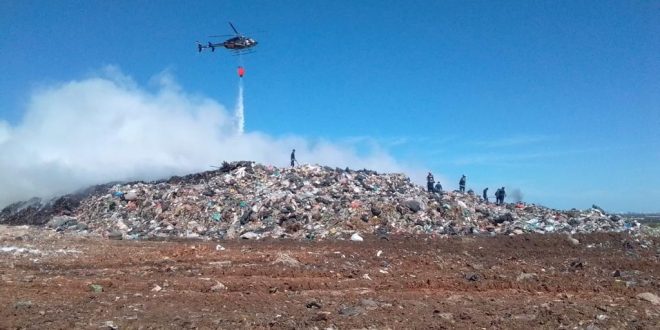 MÉRIDA, Yuc., 16 de enero 2023.- Bomberos de la Secretaría de Seguridad Pública combaten incendio en el relleno sanitario de Mérida.