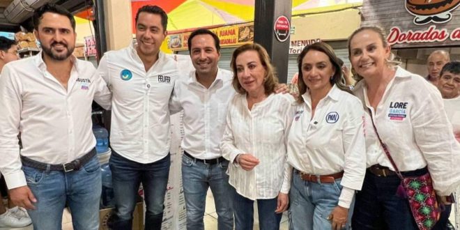 Posteriormente, Vila Dosal acompañó a Feli Fer Macías, candidato del PAN a la alcaldía del Querétaro, y los demás candidatos de Acción Nacional a Senadores, diputada federal y diputada federal por este estado, a una caminata por el área de comida del mercado de “El Tepe”, ubicado en la colonia Linda Vista en la delegación Centro Histórico.