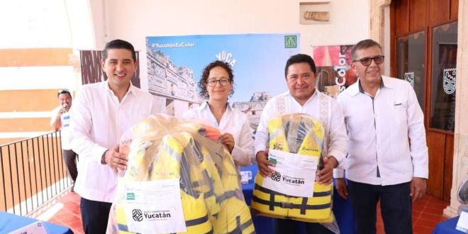 Por lo anterior, este 27 de julio, la titular de Sefotur, Michelle Fridman Hirsch aprovechó su visita a Tekax “Pueblo Mágico”, para hacer la entrega oficial de los apoyos a ocho Cooperativas Turísticas de la región Ruta Puuc y Aldeas Mayas, quienes recibieron un total de 70 gorras, 4 radios portátil, 15 mosquetones de seguridad, 15 cascos de seguridad, 11 cuerdas de 60 metros cada una, 15 arneses, 2 binoculares, 40 jerseys, 2 pantalones desmontables, 3 lámparas de cabeza y 30 chalecos salvavidas.