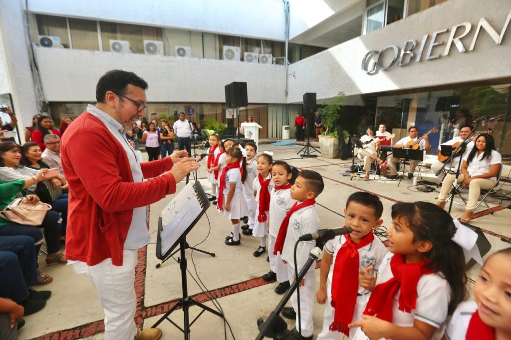 De este modo, los coros infantiles, bajo la dirección de los maestros de educación artística, Jesús Carvajal Couoh de la escuela “Nelly Sansores” y Daniel Ruz Villasuso de la escuela “Las Américas” y el acompañamiento del ensamble “In Kaajal”, integrado por 12 docentes de música de la Coordinación de Educación Artística del nivel Preescolar, dejaron escuchar sus voces bajo la emoción de los mayores.