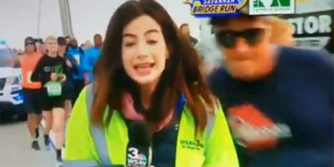 La reportera Alex Bozarjian se sintió “violada” luego que un corredor le tocó el trasero cuando ella informaba sobre el Savannah Bridge Run de Georgia, EU, el pasado fin de semana.