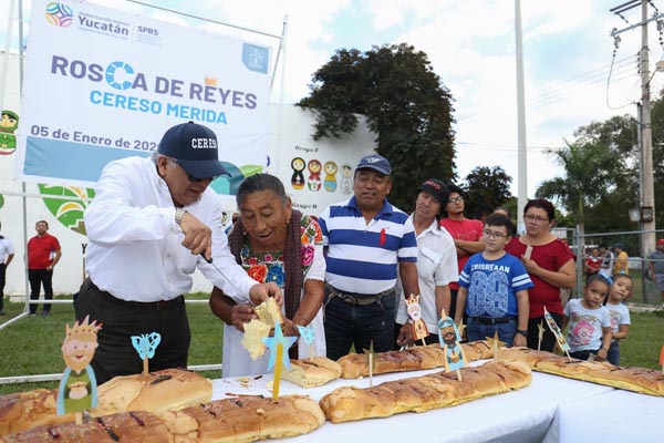 Mérida, Yucatán, 6 de enero de 2020.- En víspera de la llegada de los Reyes Magos, personas privadas de su libertad del Centro de Reinserción Social (Cereso) de Mérida elaboraron una Mega Rosca que degustaron con sus familias, en un ambiente de paz y armonía, la cual abona a las estrategias del Gobernador Mauricio Vila Dosal para preservar las tradiciones y reforzar la unión.