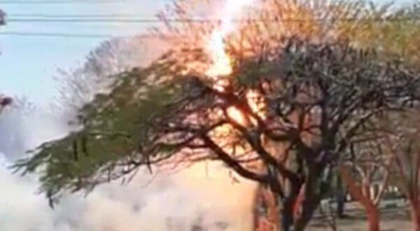 Tras los estallidos los vecinos salieron de sus casas y vieron cómo se formó un arco eléctrico que alcanzó un árbol.