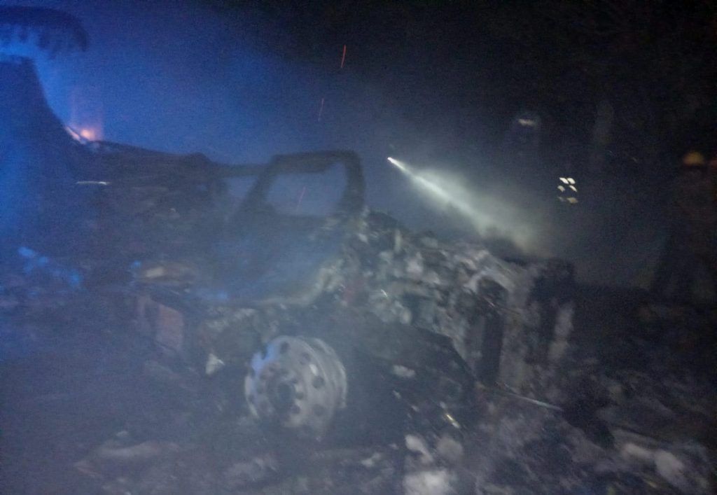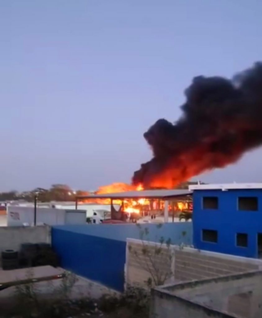 Uman,Yucatán. – 26 mayo 2024 .- Un fuerte incendio se registró la tarde noche de ayer domingo en un posada para chóferes de trailers ubicada en el kilómetro 14+300 de la carretera Mérida-Umán.