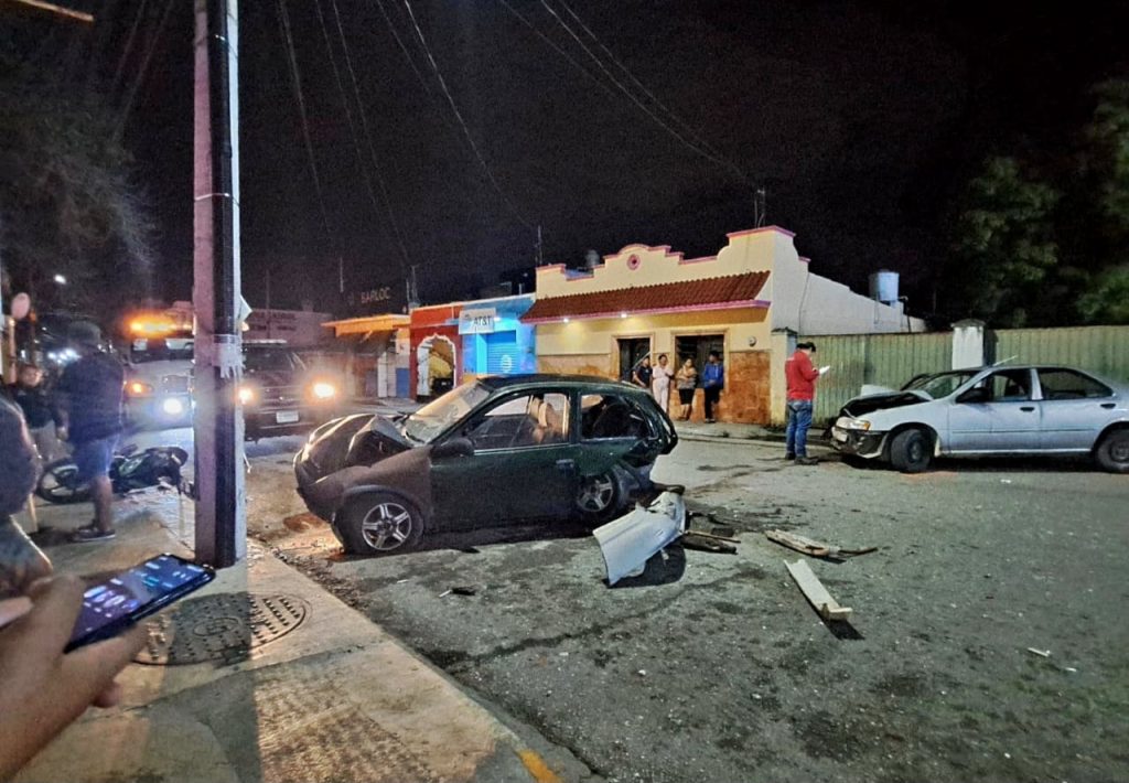 Continuando su loca carrera y proyectando contra la parte posterior de un compacto Chevy que también se encontraba estacionado, el cual ante el impacto dio un giro de 180 grados, proyectándose contra un poste de concreto de la CFE.