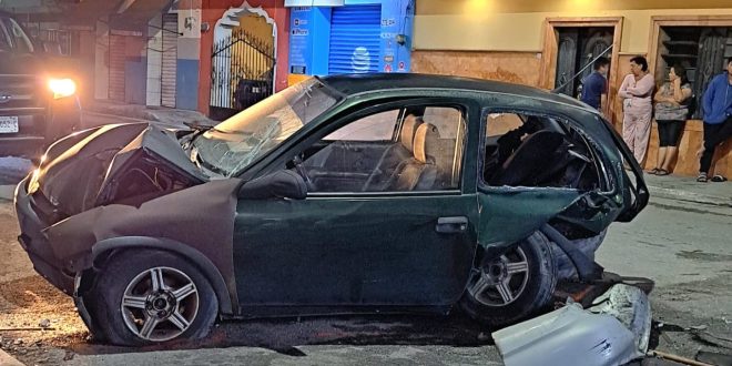 A tan solo una cuadra de la plaza principal, J. A. Q. G. de 33 años, circulaba de sur a norte, con exceso de velocidad, ya que le estaba ganando el sueño alrededor de la medianoche del sábado.