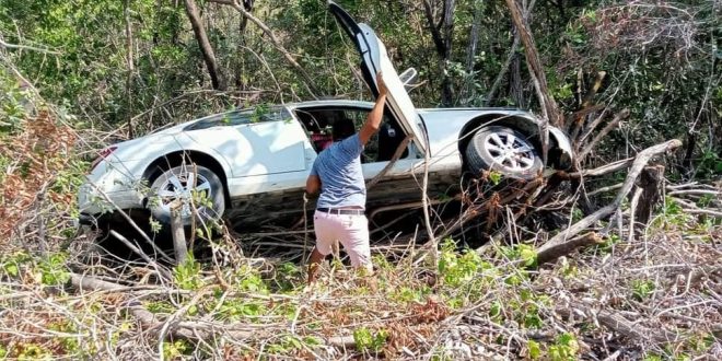CELESTÚN, Yuc., 15 de junio 2023.- El primer percance se trató de una fuerte salida en el tramo ‘salado’ Kinchil-Celestún, cuando el joven Jesús C.S., de 28 años regresaba a su casa en el municipio costero a bordo de un automóvil Mercedes Benz.