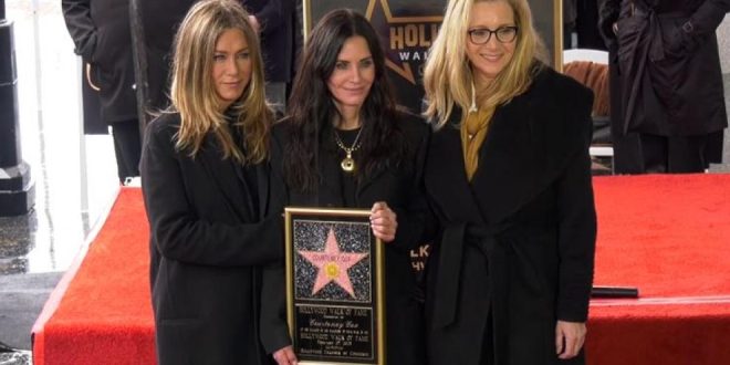 Courteney Cox recibió su estrella en el Paseo de la Fama de Hollywood en compañía de sus compañeras Jennifer Aniston y Lisa Kudrow de la famosa serie Friends, el éxito más grande de su carrera.