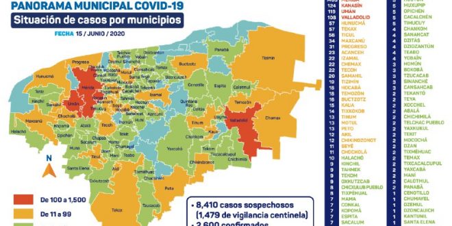 Mérida, Yucatán, 15 de junio de 2020.- Nuevamente el índice de contagios de Covid-19 vuelve hacer muy alto en Yucatán, debido a que este lunes se registraron 56 nuevos contagios y lamentablemente 6 decesos más-