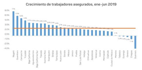 En junio de 2019, el estado se colocó en el cuarto lugar a nivel nacional en crecimiento laboral.