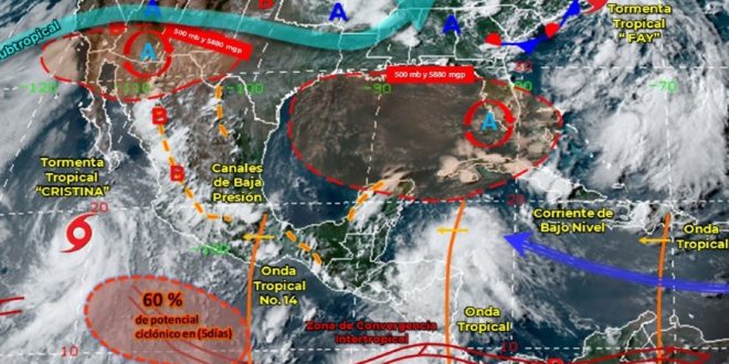 Cristina se formó el 6 de julio en aguas del sur de México y es la tercera tormenta tropical de la temporada de huracanes 2020 del Pacífico, después de que Amanda afectó el sur y sureste del país a finales de mayo pasado y de Boris principios del mes de junio.