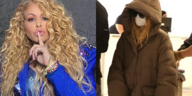 Por si fuera poco, la cantante, que iba acompañada por un grupo de seguridad, también usaba unos lentes de sol y un cubrebocas blanco, accesorios con los que se cubría todo su rostro