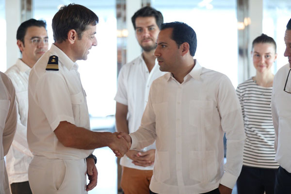 Con 152 pasajeros y 116 tripulantes a bordo, el barco de la única compañía francesa dedicada a los viajes en crucero por todo el mundo en clase premier, llegó a la Terminal de Cruceros de Progreso, donde el Gobernador hizo un breve recorrido tras realizar el intercambio de placas con el capitán Yannick Herve Marié Simón.