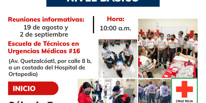 Mérida, Yucatán 26 de julio de 2023.- La Cruz Roja Mexicana Delegación Yucatán iniciará el próximo 7 de octubre con un nuevo curso para formar a la generación #35 de Técnicos en Urgencias Médicas (TUM) nivel básico, informó el Coordinador Estatal de Capacitación, Jorge Contreras Lizama.