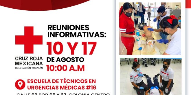 Mérida, Yucatán a 15 de agosto de 2024.- El próximo sábado 17 de agosto se llevará a cabo la segunda reunión informativa de la Cruz Roja Mexicana Delegación Yucatán para dar a conocer los requisitos para ingresar al curso de Técnicos en Urgencias Médicas que iniciará en septiembre.