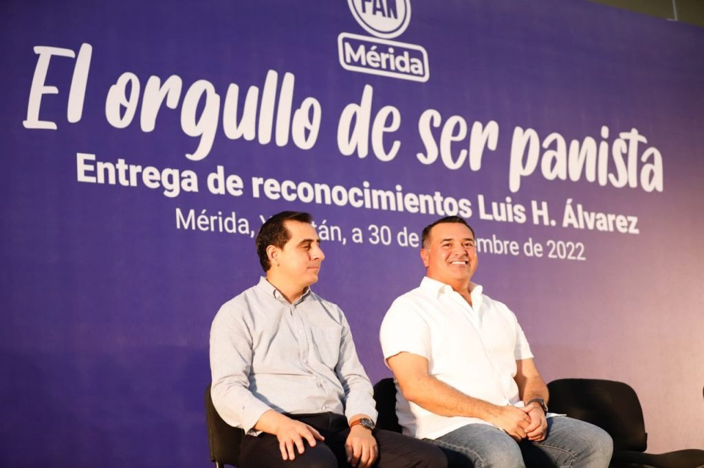 Mérida, Yucatán, 30 de septiembre de 2022.- Hoy estamos trabajando todos coordinados para demostrar que el Partido Acción Nacional (PAN) es la mejor opción, porque cuando hacemos equipo, nadie nos gana, afirmó el Gobernador Mauricio Vila Dosal, durante la entrega de reconocimientos “Luis H. Álvarez” a meridanos y meridanas por sus años de militancia, así como a los subcomités por su trabajo en el PAN.