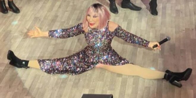 Al finalizar su presentación la ícono del cine de ficheras no dudó en hacer un split, ante la mirada atónita de sus compañeros y los aplausos de los presentes en el set de grabación de TV Azteca.