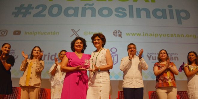 Desde la sala Mayamax del Gran Museo del Mundo Maya, en representación del Gobernador Mauricio Vila Dosal y junto a la comisionada presidenta del INAIP Yucatán, María Gilda Segovia Chab, la titular de la SGG encabezó el evento que incluyó la develación de una placa conmemorativa y entrega de reconocimientos a Virginia Rosalía Angulo Vázquez y Pablo Loría Vázquez, por su trayectoria de 20 años en materia de transparencia.