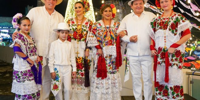 Tizimín, Yucatán, 31 de diciembre de 2024.- El Gobernador Joaquín Díaz Mena, acompañado de su esposa, la maestra Wendy Méndez Naal, Presidenta Honoraria del Sistema para el Desarrollo Integral de la Familia (DIF) Yucatán, y del Presidente Municipal de Tizimín, Adrián Quiroz Osorio, encabezaron la ceremonia de coronación de la Reina de la Feria de Reyes Tizimín 2025, un evento lleno de cultura y costumbres que marcó el inicio de una de las fiestas patronales más importantes del estado.