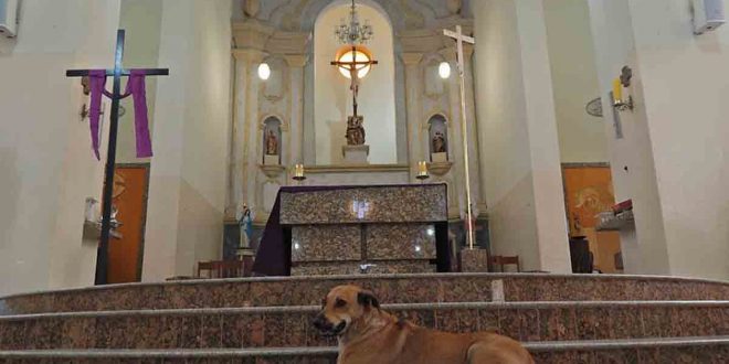 Inicio / Global / Cura lleva perritos callejeros a misa para buscarles un hogar