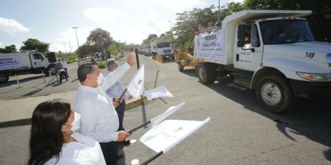 Mérida, 15 de septiembre de 2021.- En el marco del compromiso de responsabilidad social que tiene el Ayuntamiento de Mérida con las y los meridanos, esta mañana el alcalde Renán Barrera Concha encabezó el inicio de la jornada extraordinaria de limpieza denominada “Mérida Más Chula”, a través de la cual se trabajará del 15 al 20 de septiembre para recuperar y devolver el esplendor a los espacios públicos y recreativos del Municipio que resultaron afectados por las pasadas lluvias.