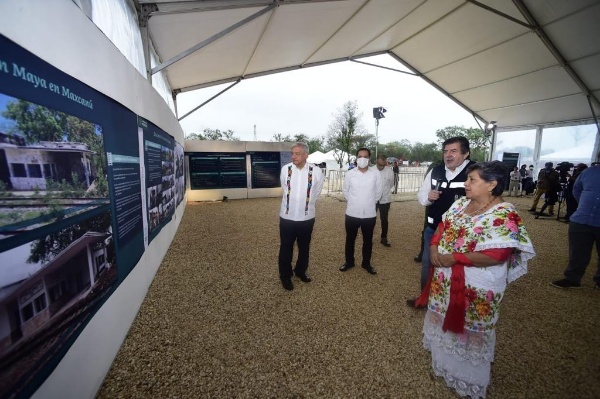 Yucatán, Mauricio Vila Dosal, el secretario de la Defensa Nacional, Luis Cresencio Sandoval González, la presidenta municipal de Maxcanú, Reyna Marlene de los Ángeles Catzin Cih, el fundador de Grupo Vidanta, Daniel Chávez Morán y el representante de Grupo INDI, Manuel Muñozcano.