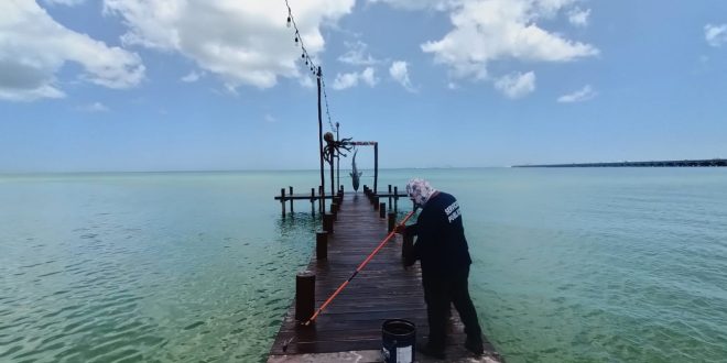 PROGRESO, 17 de junio. – El H. Ayuntamiento que preside el alcalde Julián Zacarías Curi, a través de la Dirección de Servicios Públicos y Ecología, realizó trabajos de mantenimiento en el muelle de “La Pescadora”, ubicado en el Malecón Internacional; así como también en el de Chicxulub Puerto.