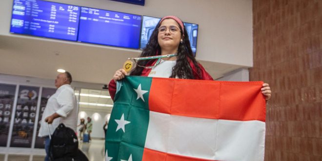 La estudiante, fue recibida en el Aeropuerto Internacional de Mérida “Manuel Crescencio Rejón” en medio de abrazos y muestras de cariño por sus familiares, amigos y autoridades de la Secretaría de Educación del Gobierno del Estado (Segey), procedente de un entrenamiento en Guanajuato como parte de la preselección para la Olimpiada Panamericana Femenil.