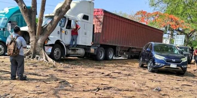 Mérida, Yuc., a 20 de mayo.- Un tráiler fuera de control provocó una carambola de cinco vehículos en la avenida Internacional con calle 26-A de la colonia Graciano Ricalde, a pocos metros de la entrada de Umán hacia Mérida, y luego se estrelló contra un árbol en el camellón de esa vía.
