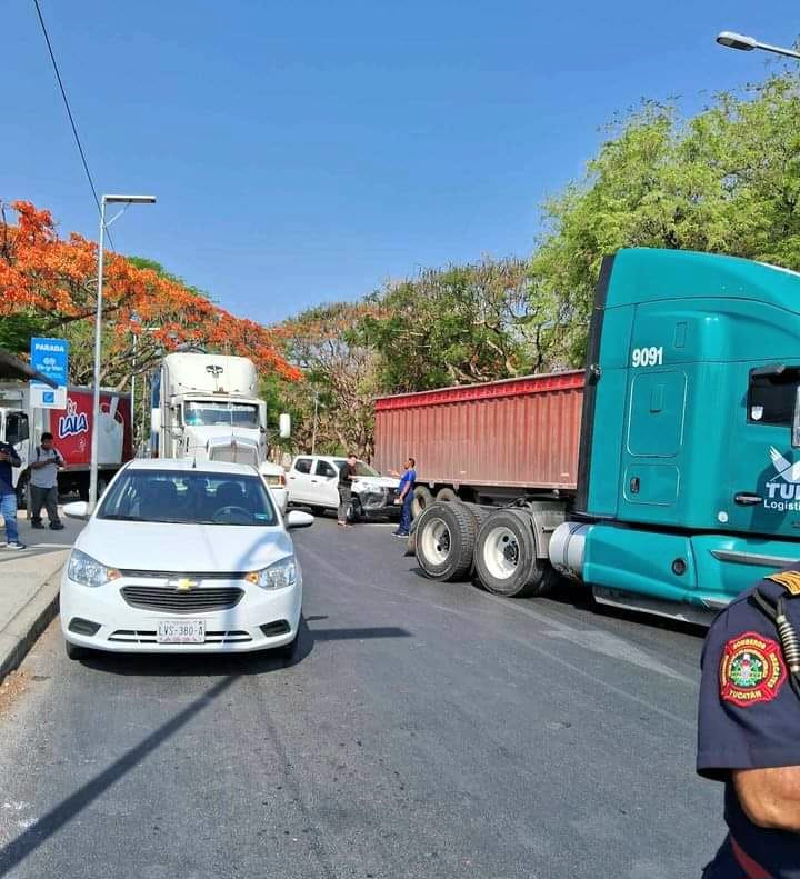 El pesado vehículo entraba a la capital yucateca cuando bajaba del puente que viene de Umán, y cerca del cruce mencionado el operador perdió el control del volante presuntamente al ganarle el cansancio, por lo que dormito unos segundos, suficientes para terminar chocando contra otro tractocamión, a su vez este le pegó a una camioneta Nissan la cual se fue contra automóvil tipo Aveo.