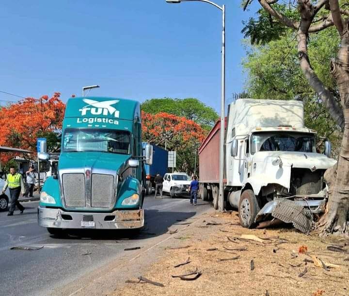 Para finiquitar, el segundo tráiler que se fue hacia la izquierda, subió al camellón y se estrelló contra un árbol.