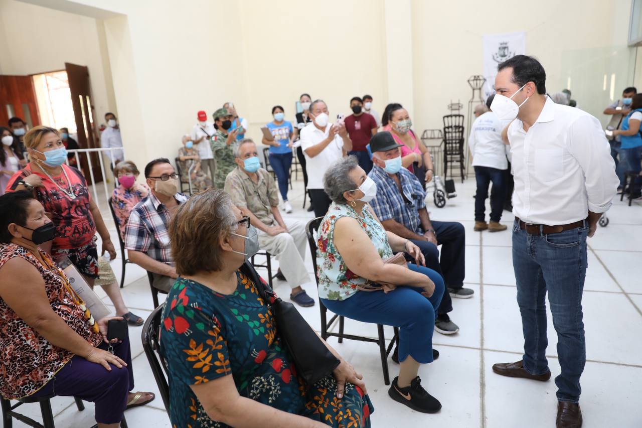 -Vila Dosal supervisó la aplicación de segundas dosis a personas adultas mayores de 60 años en el módulo habilitado en la Escuela Superior de Artes de Yucatán (ESAY).