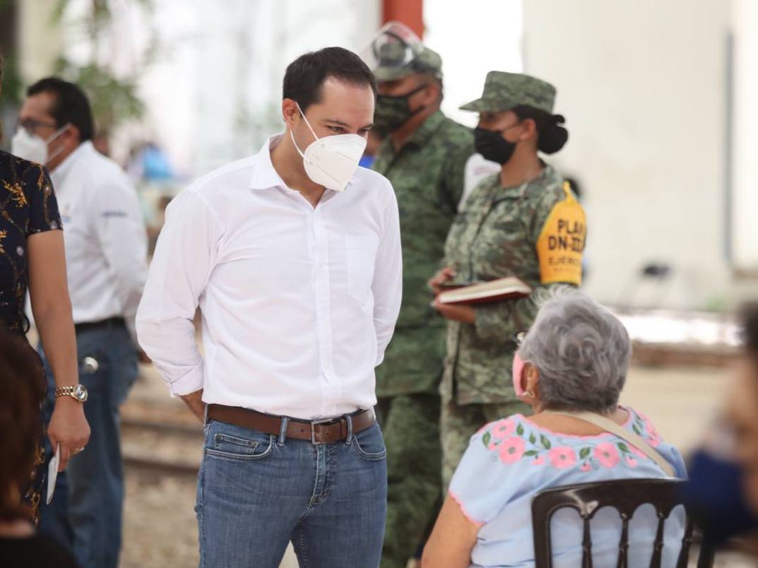 Acompañado del titular de la Secretaría de Salud del estado (SSY), Mauricio Sauri Vivas, el Gobernador indicó que hoy inició la vacunación a la población de 50 a 59 años en los municipios de Cacalchén, Homún, Temax, Chichimilá, Hoctún, Kinchil, Maní, Baca, Abalá, Opichén, Hocabá, Kantunil, Tixcacalcupul y Teabo.