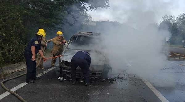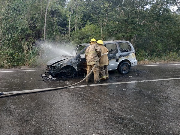 Al arribar los bomberos del carropipa 831 y policías estatales, la unidad estaba envuelta en llamas, por lo que acabó como pérdida total. Todo indica que un probable corto circuito achicharrado su patrimonio rodante de don Julio.