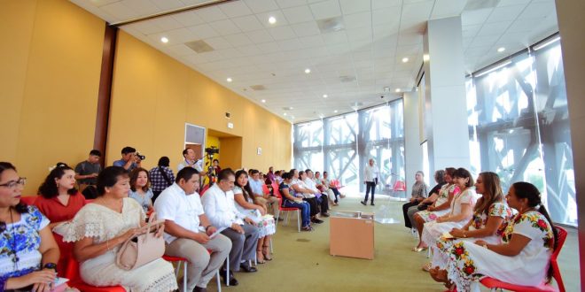 Investigadores, portadores de tradiciones, y la comunidad en general dialogan sobre la lengua maya, janal pixan, vaquería y bordados.