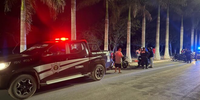 TIZIMÍN, Yuc., 13 de abril 2026.- La noche del domingo, elementos de la Policía Municipal de Tizimín intervinieron ante el reporte ciudadano de un grupo de jóvenes que realizaban peligrosas acrobacias y presuntas carreras sobre la calle 45-A de la avenida Miguel Hidalgo.