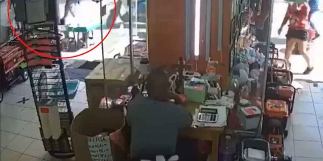 Incluso una persona entra al local y pide ayuda, por lo que otro hombre sale para defender a la víctima, pero en ese momento, los ladrones emprenden la huida.