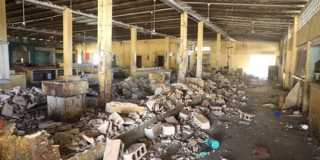 En representación del Gobernador, el titular de la Secretaría de Desarrollo Social (Sedesol), Roger Torres Peniche, encabezó la demolición del antiguo centro de abasto, con lo que se da paso a la edificación del nuevo edificio que tendrá una inversión de 30 millones de pesos y se estima se concluya en un plazo de 8 meses.