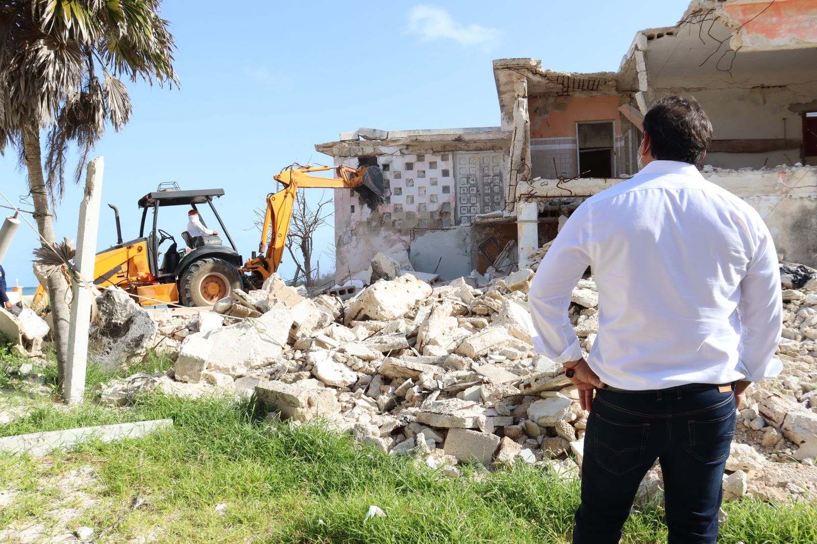 El alcalde Julián Zacarías Curi acude al puerto de Chuburná para atender la demolición de un predio en mal estado