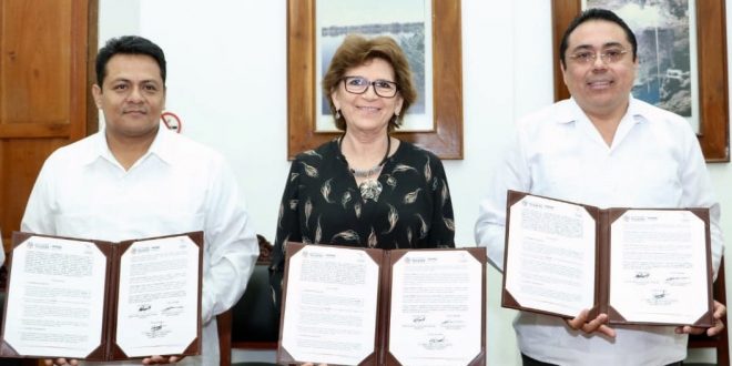 Mérida, Yucatán, 2 de abril de 2019.- Con el fin de formalizar una agenda de trabajo conjunta en materia de capacitación dirigida a autoridades municipales, el Instituto de Desarrollo Regional y Municipal (Inderm) y la Comisión de Derechos Humanos del Estado (Codhey) suscribieron un convenio de colaboración para la implementación de políticas públicas con respeto y cumplimiento de estas garantías universales.